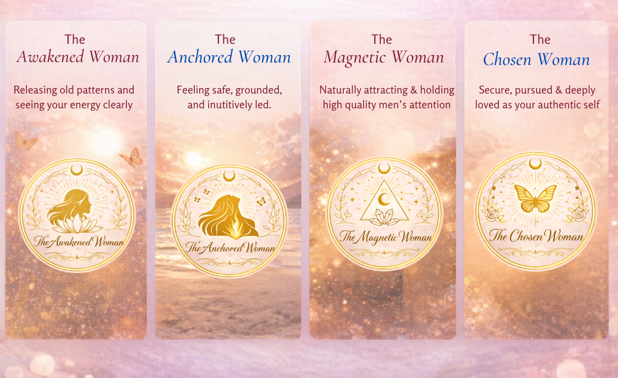 Our signature, proven 4 -phase journey into feminine embodiment, emotional safety, and becoming the woman a healthy man naturally chooses.